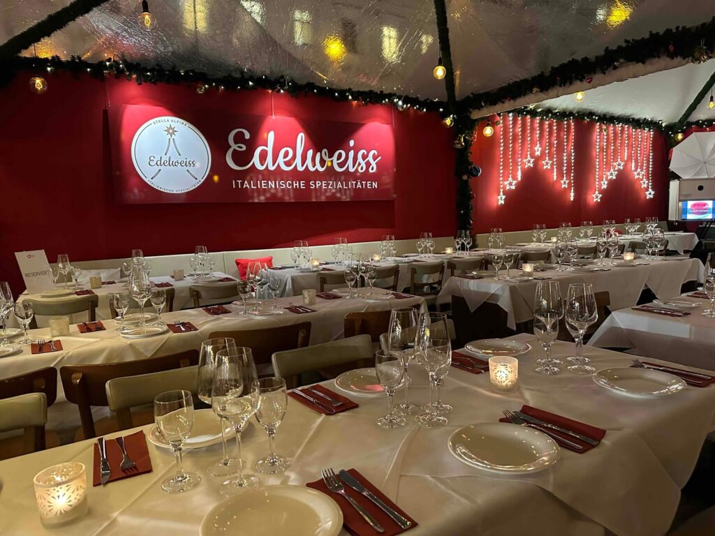 Genießen Sie die schönste Zeit des Jahres in typisch italienischer Atmosphäre. Die beste Antipasti-Auswahl, Pizza, Lasagne, Entrecôte, Entenbrust mit Granatapfelsause, gegrilltes Lachsfilet mit Gemüse, Burrata mit Avocado Tartare und Cherrytomaten, Tagliatelle mit Speinpilzen oder mit schwarzem Trüffel, Käse und Schinkenplatten, die niemanden kalt lassen und außerdem sehr gut zum italienischen Winzerwein passen. Gruppenmenüs, unsere Speise- und Getränkekarte finden Sie auf unserer Webseite.